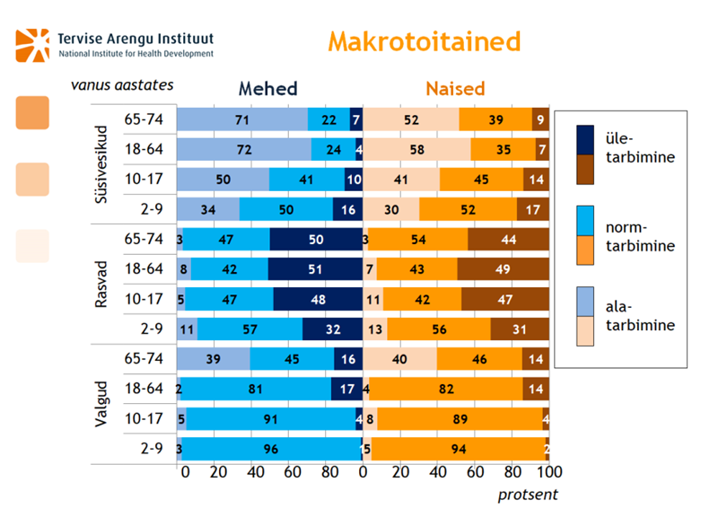 Joonis 1. Makrotoitainete tarbimise osakaalud vanuse ja soo lõikes. Allikas: TAI, 2014