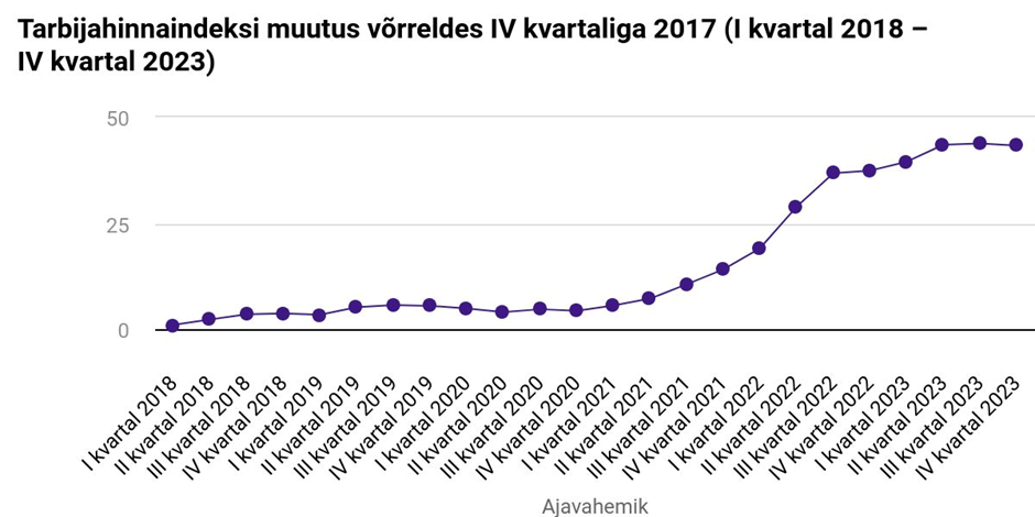 Joonis 3. Tarbijahinnaindeksi muutus 2018-2023. Allikas: Statistikaamet