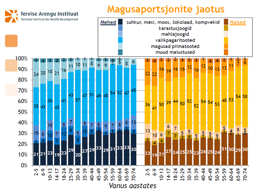 Joonis 2. Tarbitavate magusaportsjonite jaotus vanuse ja soo lõikes. Allikas: TAI, 2014